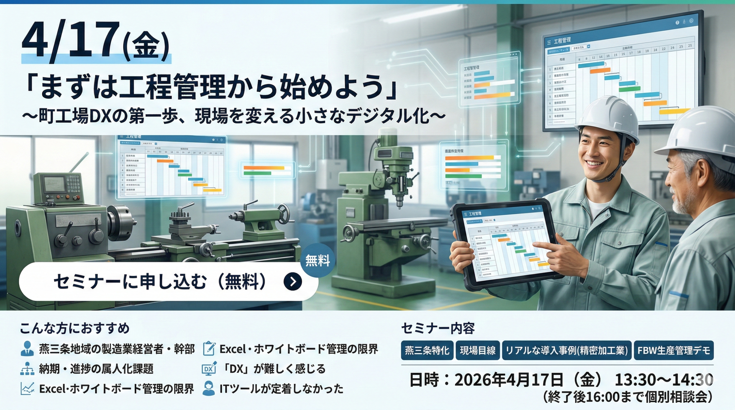 4/17(金)|「まずは工程管理から始めよう」 ~町工場DXの第一歩、現場を変える小さなデジタル化~
